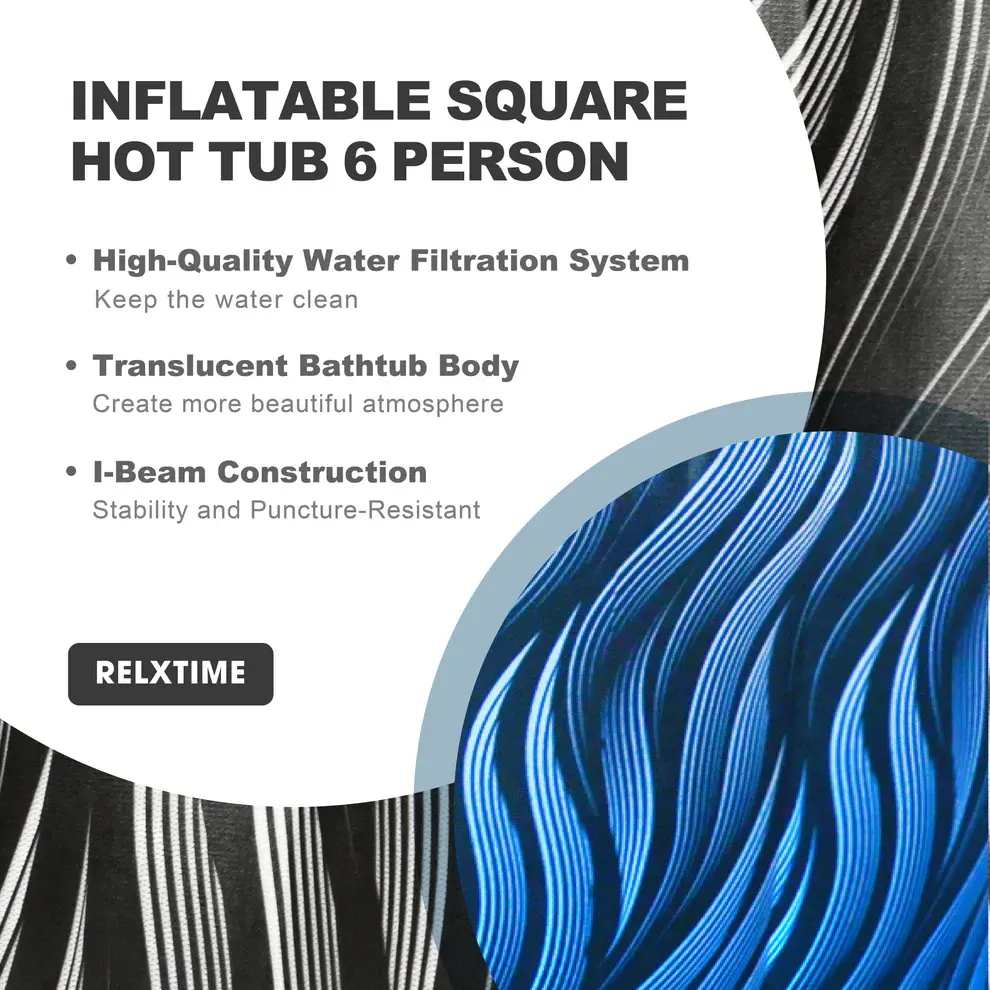 There’s a particular kind of relief that hits when you lower yourself into warm, jet-massaged water after a long day. The Relxtime 4–6 Person LED Black Inflatable Hot Tub delivers exactly that — without the permanent installation, the contractor quotes, or the five-figure price tag. Whether it’s a Friday evening wind-down with your partner or a weekend soak with the whole family, this outdoor LED black inflatable hot tub is built to hold up, heat fast, and look good doing it.