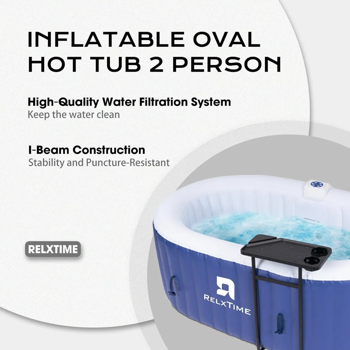 Most inflatable hot tubs are round. Round looks fine, but it eats up space in a way that doesn’t always work for a smaller backyard or apartment terrace. The oval design on this RELXTIME spa is more practical than it sounds — two people sit across from each other comfortably, and the footprint fits into tighter spots where a round tub simply wouldn’t go. If space is a real concern for you, that oval shape is worth paying attention to.