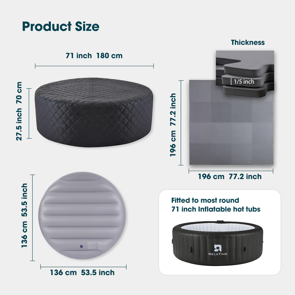 | Compatible Tubs | Most round 71″ inflatable hot tubs incl. RELXTIME 4–6 person models |