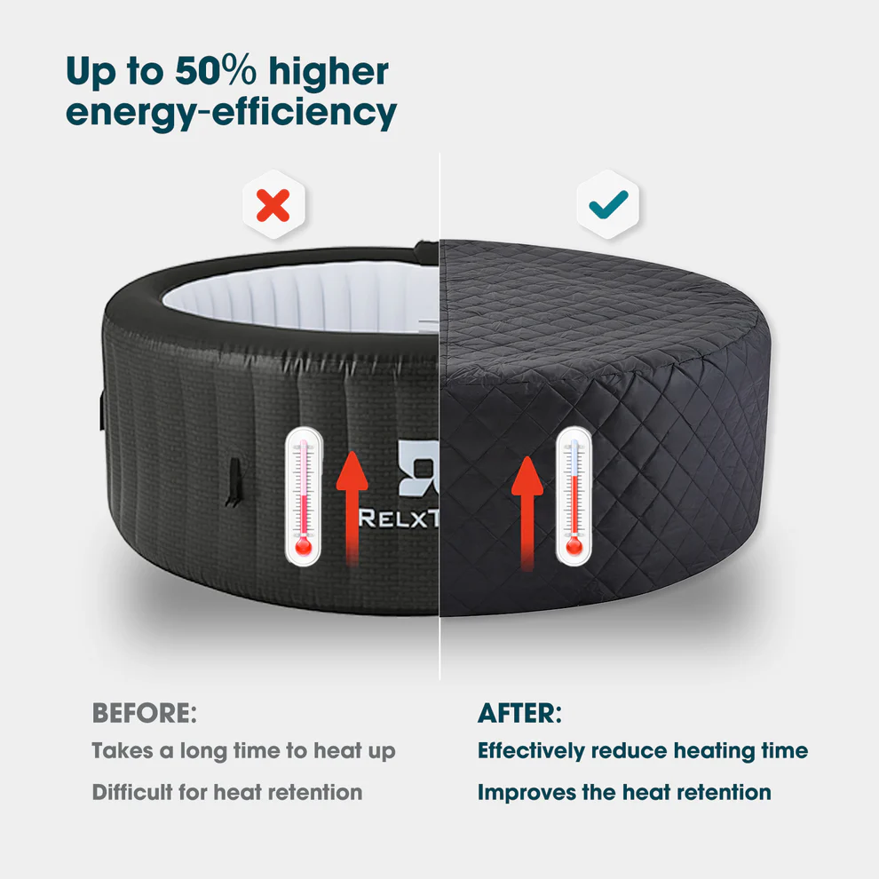 If your hot tub is losing heat too fast — or you’re tired of clearing off leaves and rain before every soak — the RELXTIME Insulation Suit is built exactly for that problem. This round thermal spa cover and mat set is designed for real Canadian outdoor use. Whether it’s a freezing Ontario morning or a wet West Coast afternoon, it keeps your spa warm, covered, and clean between sessions. When you’re ready to relax, the water’s already waiting.