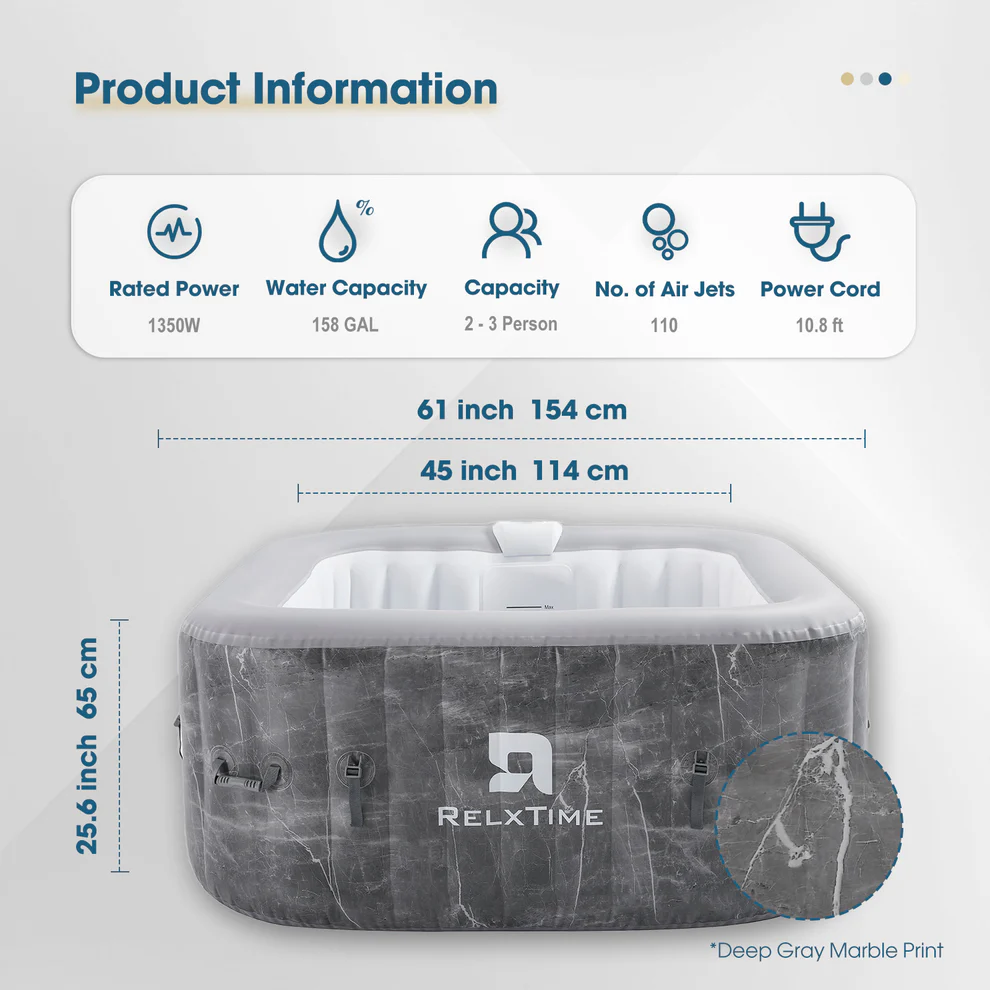 Every Relxtime inflatable spa ships with filter cartridges included and is backed by a manufacturer warranty. If something doesn’t work right, their customer service team is there to sort it out.