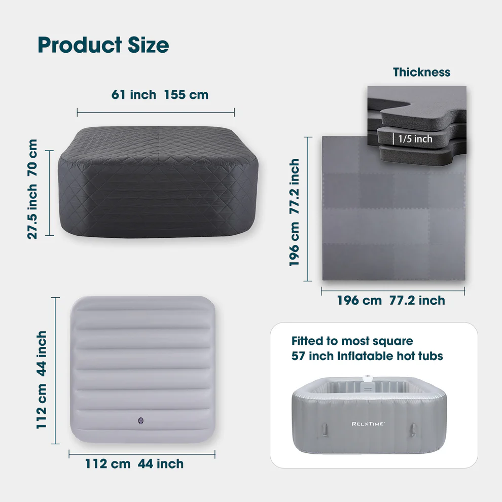 f your hot tub is losing heat faster than it should — especially through a Canadian winter — the cover is almost always the problem. The RELXTIME Square Inflatable Hot Tub Insulation Cover is built to fix that. It keeps the heat in, the cold out, and your energy bill where it belongs. Whether your tub is sitting on a backyard deck in Edmonton or a condo patio in Vancouver, this cover does the job every season.